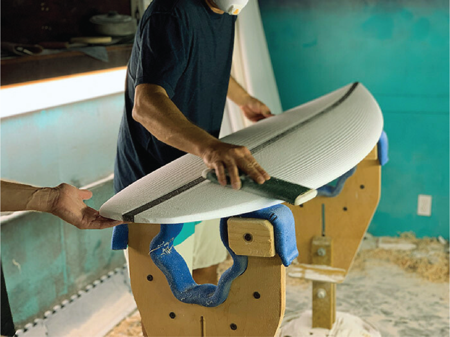 All-around everything shortboard. It’s a beast that works in most conditions. The entry rocker is lower but not so low that you can’t fade straight to the bottom on a steeper drop. It took us years and a lot of trials to find that happy medium between nose rocker and optimal nose width. The back half of the board is very performance-oriented, with the tail ever so slightly wider than other shortboards. It’ll give you that little extra pushing back feeling you get from a wider tail, with the hopes of giving you that drive and projection you’re going for. We have a few riders who consider this their main board and they’ve been consistently ordering and building their quivers around this “Animal” design for years.